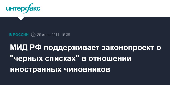 МИД РФ поддерживает законопроект о "черных списках" в отношении иностранных чиновников