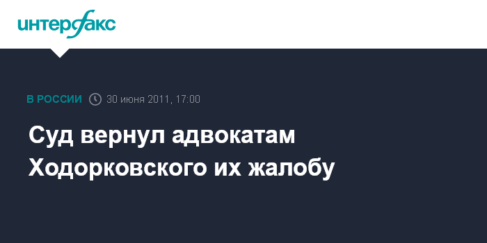 Москва. 30 июня. INTERFAX.RU - Преображенский суд Москвы не стал принимать жалобу адвокатов бывшего главы НК "ЮКОС" Михаила Ходорковского на возврат его ходатайств об условно-досрочном освобождении.