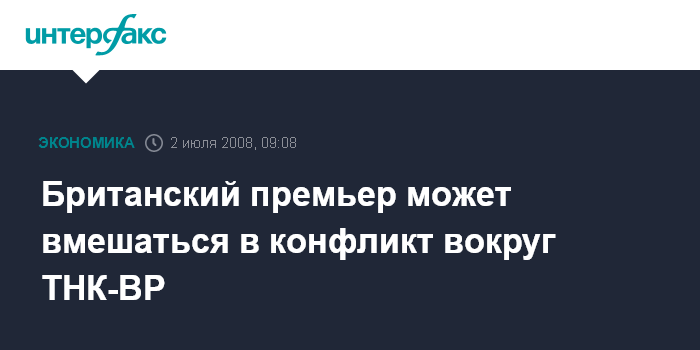 Москва. 2 июля. INTERFAX.RU - Британский премьер Гордон Браун может вмешаться в конфликт между российскими и британскими акционерами ТНК-BP, подняв этот вопрос в ходе предстоящей встречи с президентом РФ Дмитрием Медведевым, пишет лондонская The Times со ссылкой на свои источники.