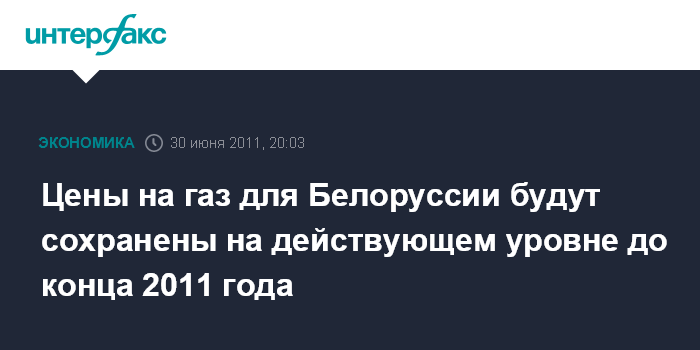 Цены на газ для Белоруссии будут сохранены на действующем уровне до конца 2011 года