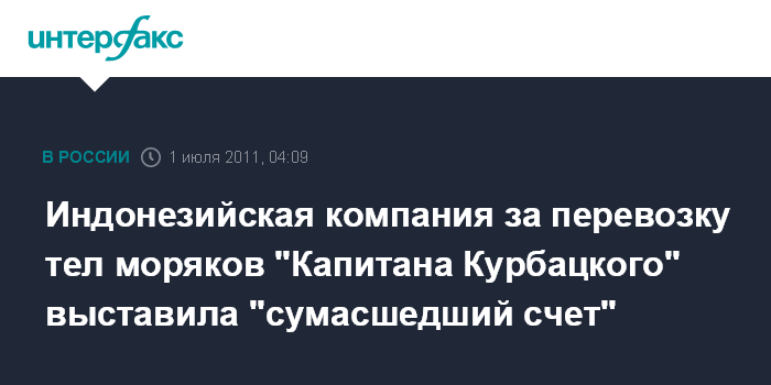 Индонезийская компания за перевозку тел моряков "Капитана Курбацкого" выставила "сумасшедший счет"