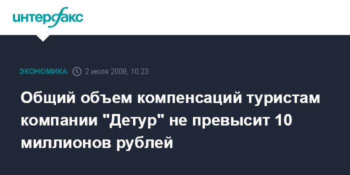 Общий объем компенсаций туристам компании "Детур" не превысит 10 миллионов рублей