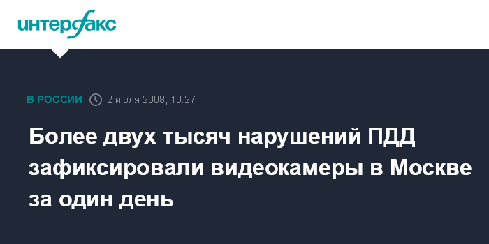 "Да, в ноль часов они (видеокамеры - ИФ) были включены, уже в рабочем режиме. Есть и первые результаты их работы - зафиксировано более двух тысяч нарушений. Это только по Москве", - сообщил начальник департамента обеспечения безопасности дорожного движения МВД России генерал Виктор Кирьянов.
