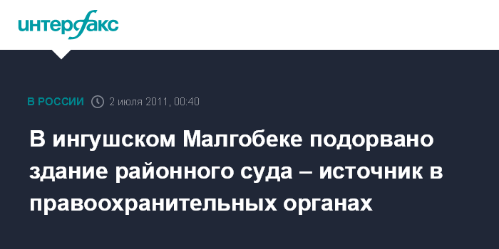 Назрань. 2 июля. ИНТЕРФАКС–ЮГ– В Малгобеке в Ингушетии неизвестные у здания районного суда привели в действие мощные взрывные устройства, сообщил агентству "Интерфакс- Юг" источник в местных правоохранительных органах.