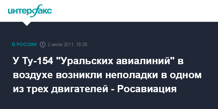 У Ту-154 "Уральских авиалиний" в воздухе возникли неполадки в одном из трех двигателей - Росавиация