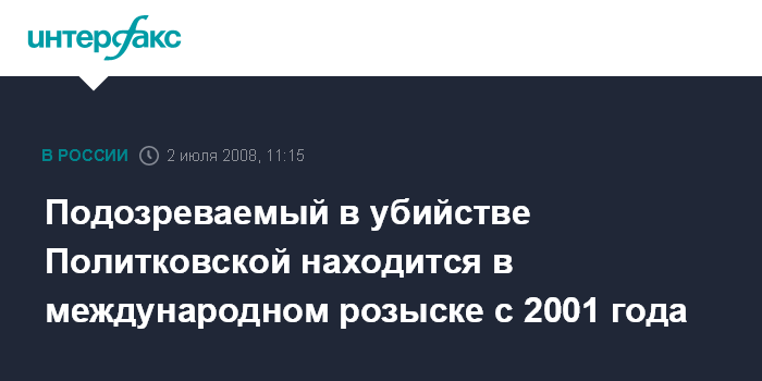 Москва. 2 июля. INTERFAX.RU - Генеральный прокурор РФ Юрий Чайка заявляет, что подозреваемый в убийстве обозревателя "Новой газеты" Анны Политковской был объявлен в международный розыск еще в 2001 году.