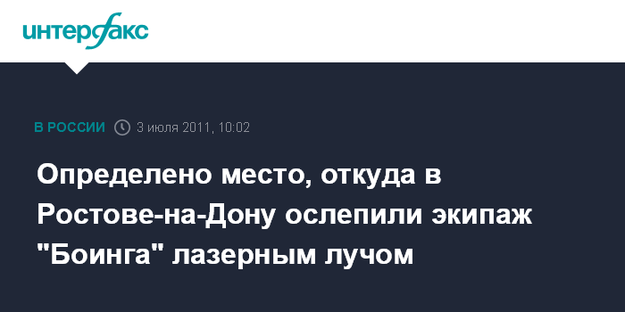 Ростов-на-Дону. 3 июля. INTERFAX.RU - Наряды полиции ведут поиск неизвестного, который минувшим вечером лазерным лучом ослепил заходивший на посадку "Боинг-737" в ростовском аэропорту, сообщил агентству "Интерфакс-Юг" руководитель пресс-службы ГУ МВД РФ по Ростовской области Алексей Полянский.