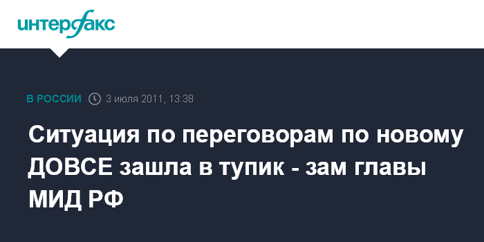 Ситуация по переговорам по новому ДОВСЕ зашла в тупик - зам главы МИД РФ
