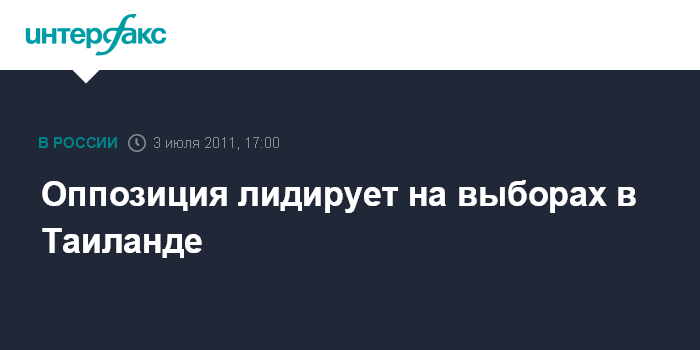 Лондон. 3 июля. INTERFAX.RU - Партия Йинглак Чинават - сестры свергнутого лидера Таиланда Таксина Чинавата, проживающего в добровольном изгнании в Дубае, опережает конкурентов на всеобщих выборах в стране, сообщает телерадиокорпорация BBC. Подсчитано 60% голосов и, судя по всему, на выборах уверенно лидирует оппозиционная партия "Для Таиланда", которую возглавляет Й.Чинават. Ожидают, что она может получить половину мест в парламенте и стать первой в Таиланде женщиной премьер-министром.