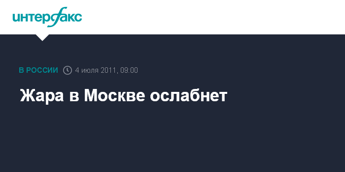 Москва. 4 июля. INTERFAX.RU - Сильная жара, установившаяся в столичном регионе, в начале этой недели немного спадет, сообщили "Интерфаксу" в Гидрометеобюро Москвы и Московской области.