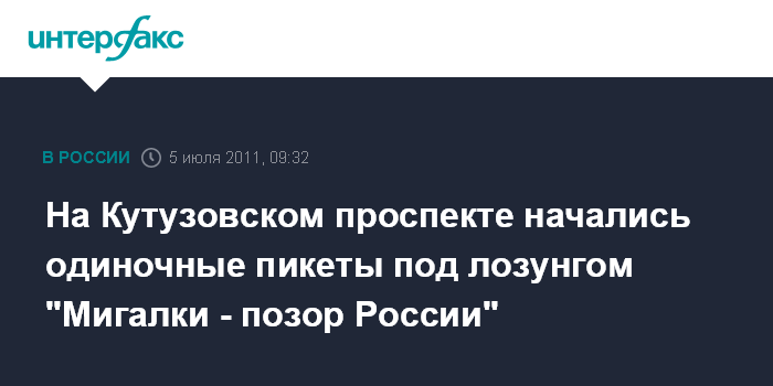 "С сегодняшнего дня мы проводим одиночные пикеты на Кутузовском проспекте рядом с Триумфальной аркой. Акция проводится под лозунгом "Мигалки - позор России", - сказал Канаев во вторник "Интерфаксу".