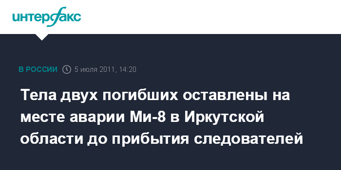 Тела двух погибших оставлены на месте аварии Ми-8 в Иркутской области до прибытия следователей