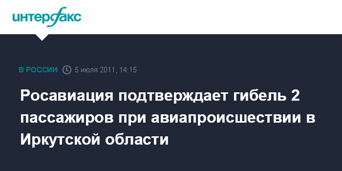 Росавиация подтверждает гибель 2 пассажиров при авиапроисшествии в Иркутской области