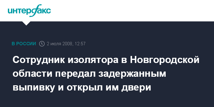 Сотрудник изолятора в Новгородской области передал задержанным выпивку и открыл им двери