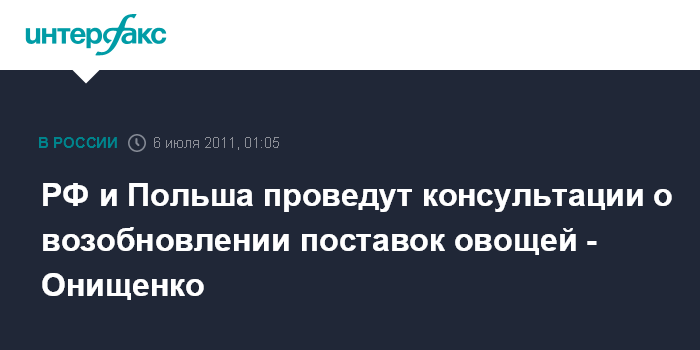 РФ и Польша проведут консультации о возобновлении поставок овощей - Онищенко