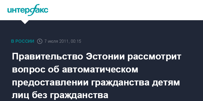 Таллин. 7 июля. ИНТЕРФАКС - Правительство Эстонии на заседании в четверг рассмотрит предложение Социал-демократической партии Эстонии об автоматическом предоставлении гражданства в порядке натурализации детям лиц, не имеющих гражданства.