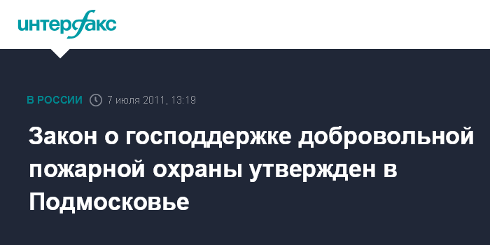 Москва. 7 июля. INTERFAX.RU - Московская областная Дума в четверг приняла законопроект о государственной поддержке общественных объединений добровольной пожарной охраны и добровольных пожарных в регионе.