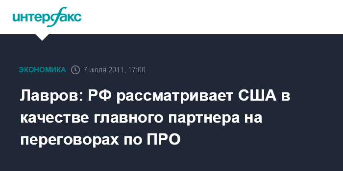 Москва. 7 июля. INTERFAX.RU - США являются основным переговорным партнером России по проблематике ПРО, заявил глава МИД РФ Сергей Лавров.