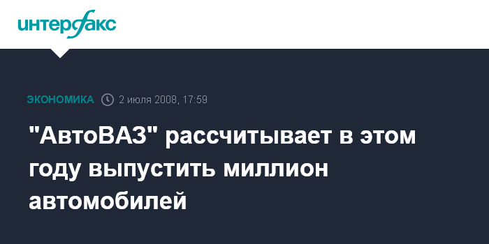 Москва. 2 июля. INTERFAX.RU - ОАО "АвтоВАЗ" рассчитывает выйти на производство 1 млн автомобилей в год в 2008 году, сообщил президент компании Борис Алешин в интервью агентству "Интерфакс" и телеканалу "Вести 24"