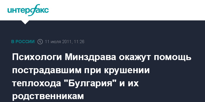 Психологи Минздрава окажут помощь пострадавшим при крушении теплохода "Булгария" и их родственникам