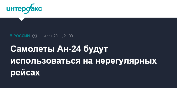 Москва. 11 июля. INTERFAX.RU - Минтранс РФ рассматривает вопрос о прекращении эксплуатации самолетов Ан-24 на регулярных рейсах, однако на данный момент речь не идет о полном запрете полетов самолетов этого типа.