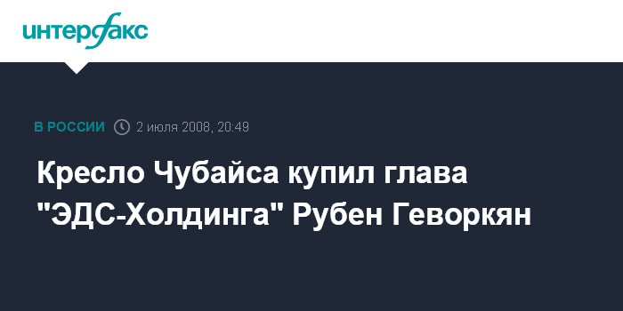 Кресло Чубайса купил глава "ЭДС-Холдинга" Рубен Геворкян