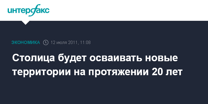 Москва. 12 июля. INTERFAX.RU - По оценке заместителя мэра столицы, главы московского стройкомплекса Марата Хуснуллина, Москве может потребоваться до 20 лет, чтобы освоить и застроить присоединенные к ней земли.