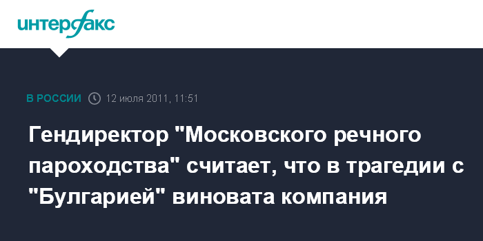Гендиректор "Московского речного пароходства" считает, что в трагедии с "Булгарией" виновата компания