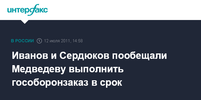 Иванов и Сердюков заверили президента, что не опасаются за гособоронзаказ и обещают выполнить его в срок.