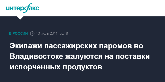 Владивосток. 13 июля. ИНТЕРФАКС-ДАЛЬНИЙ ВОСТОК - Моряки, работающие на пассажирских паромах Владивостокской компании ООО "Мортранс", жалуются на нерегулярность поставок питания для экипажей и на качество еды, что приводит к отравлениям среди моряков и может сказаться на безопасности перевозок.