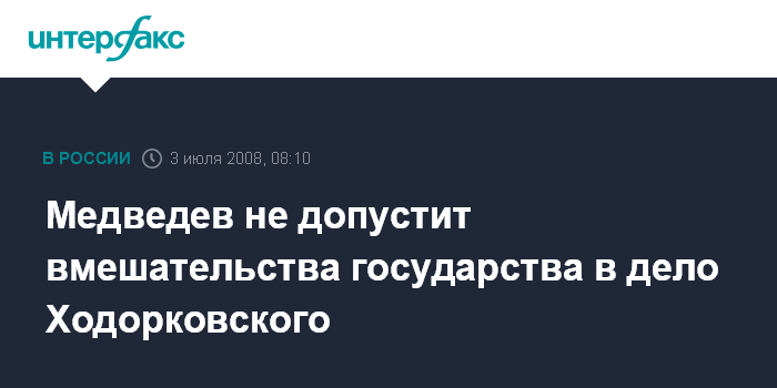 Медведев не допустит вмешательства государства в дело Ходорковского