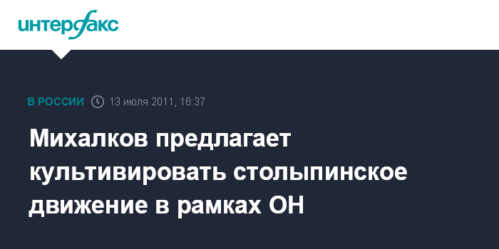 "Мне думается, может, я ошибаюсь, это все хорошо, что такие мероприятия (юбилей Столыпина - ИФ) проводятся, но будет жалко и непростительно, если на окончании этого юбилея закончатся мысли Столыпина. Мне думается, что, может быть, есть смысл подумать о том, чтоб возникло некое движение, не будем говорить партия, движение внутри Народного фронта", - заявил Михалков.