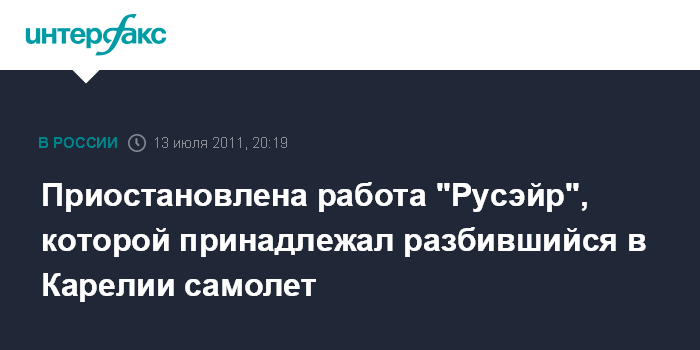 Приостановлена работа "Русэйр", которой принадлежал разбившийся в Карелии самолет