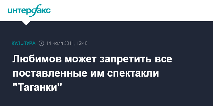 Москва. 14 июля. INTERFAX.RU - Создатель театра на Таганке Юрий Любимов заявил, что он может наложить запрет на спектакли, поставленные под его руководством. "Я думаю, я могу запретить, потому что все композиции написаны мной", - заявил режиссер в интервью Русской службе BBC.