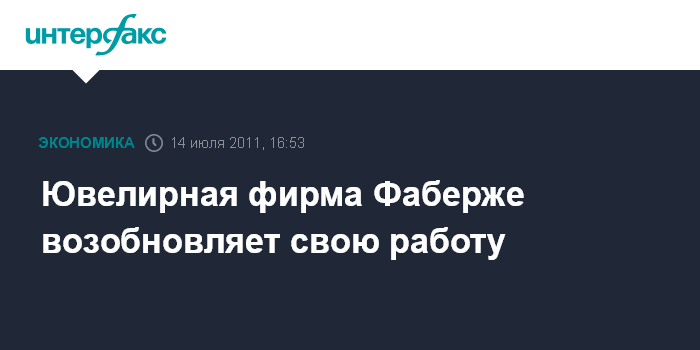 Женева. 14 июля. INTERFAX.RU - Ювелирная фирма Фаберже, которая прекратила производство ювелирных шедевров более 90 лет назад, возобновляет свою работу.