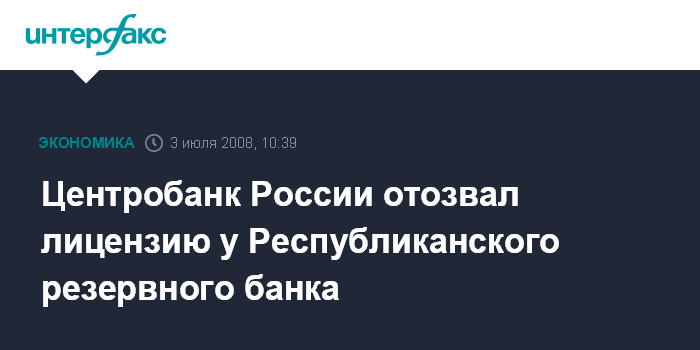 Центробанк России отозвал лицензию у Республиканского резервного банка
