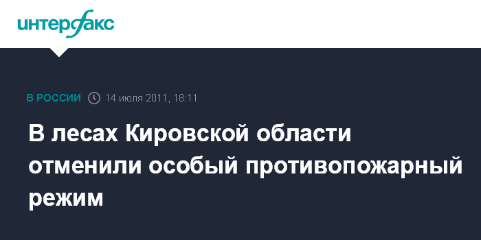 Киров. 14 июля. INTERFAX.RU - Губернатор Кировской области Никита Белых подписал постановление об отмене особого противопожарного режима на территории региона.