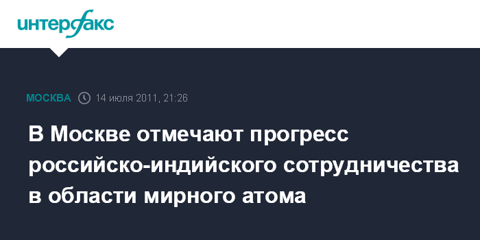 В Москве отмечают прогресс российско-индийского сотрудничества в области мирного атома