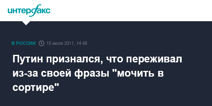 Магнитогорск. 15 июля. INTERFAX.RU - Премьер-министр Владимир Путин признал, что переживал из-за своей фразы, которая впоследствии стала одним из самых знаменитых российских политических афоризмов.