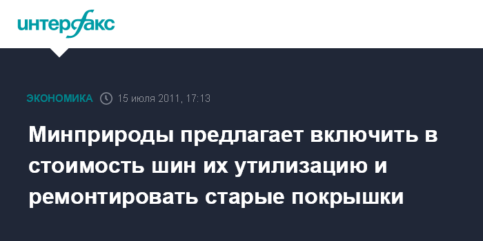 Москва. 15 июля. INTERFAX.RU - Министерство природных ресурсов и экологии РФ представило в правительство предложения по оптимизации технологий утилизации автомобильных шин.