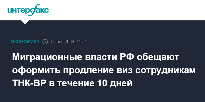 Миграционные власти РФ обещают оформить продление виз сотрудникам ТНК-ВР в течение 10 дней