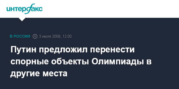 "Необходимо перенести эти объекты (горная олимпийская деревня, санно-бобслейная трасса, водозабор) на другие, согласованные с Международным олимпийским комитетом места", - сказал В.Путин на совещании в Сочи.