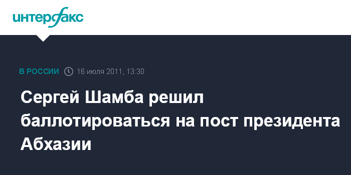 Сухуми. 16 июля. INTERFAX.RU - Заявление о согласии баллотироваться на пост президента Абхазии подал в субботу в ЦИК премьер-министр республики Сергей Шамба, сообщили "Интерфаксу" в канцелярии Центральной избирательной комиссии. По данным ЦИК, вместе с ним заявление о согласии баллотироваться на пост вице-президента подал Шамиль Адзинба - заместитель председателя Госкомитета по делам молодежи и спорта.