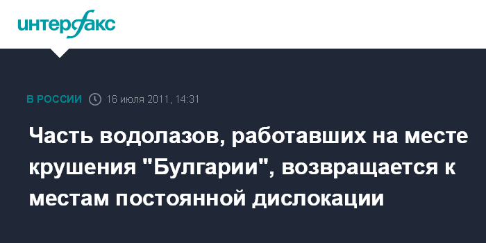 Часть водолазов, работавших на месте крушения "Булгарии", возвращается к местам постоянной дислокации