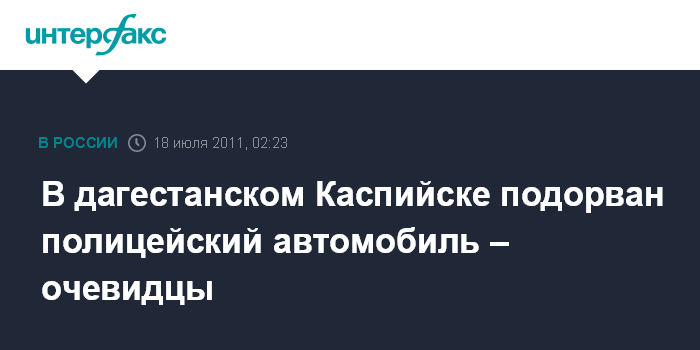 Махачкала. 18 июля. ИНТЕРФАКС-ЮГ – В дагестанском городе Каспийске подорван полицейский автомобиль, сообщает корреспондент агентства "Интерфакса – Юг" со ссылкой на очевидцев события.