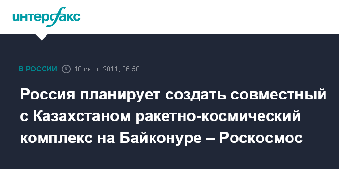 Россия планирует создать совместный с Казахстаном ракетно-космический комплекс на Байконуре – Роскосмос