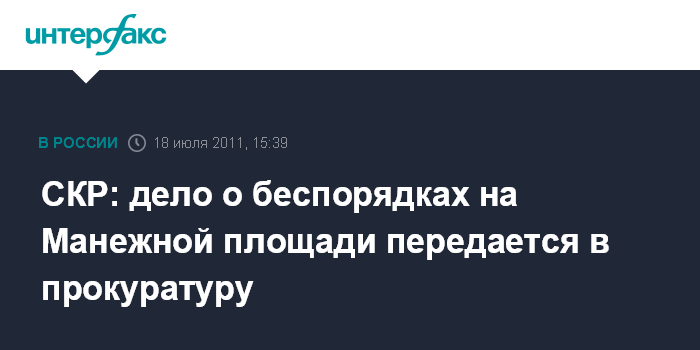 Москва. 18 июля. INTERFAX.RU - Главное следственное управление СКР по Москве завершило расследование дела по факту массовых беспорядков на Манежной площади в Москве, сообщил "Интерфаксу" официальный представитель СКР Владимир Маркин.