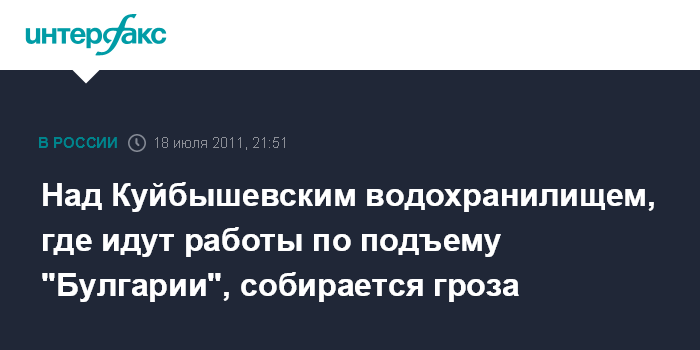 Куйбышевский затон. 18 июля. INTERFAX.RU - В районе крушения теплохода "Булгария" на Куйбышевском водохранилище, где идут работы по подъему судна, в понедельник вечером резко ухудшилась погода.