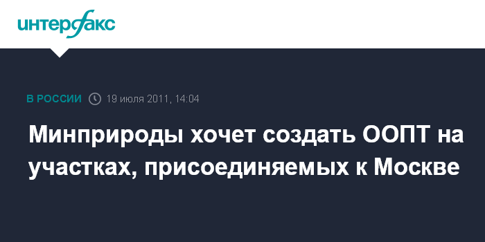Москва. 19 июля. INTERFAX.RU - Минприроды хочет создать особо охраняемые природные территории (ООПТ) на участках, присоединяемых к Москве.