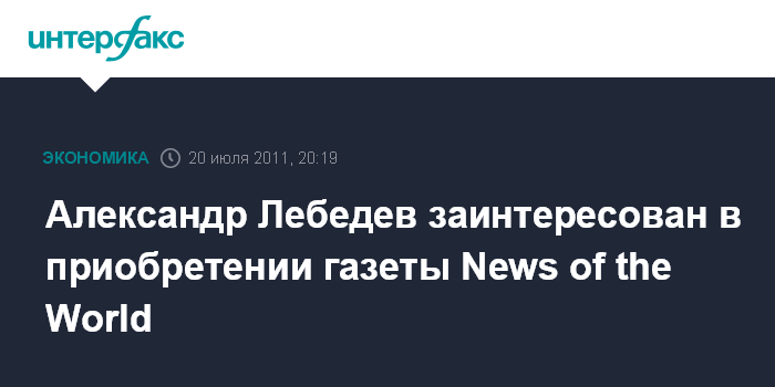 Нью-Йорк. 20 июля. INTERFAX.RU - Российский миллиардер Александр Лебедев выразил заинтересованность в покупке активов попавшей в центр крупного скандала газеты News of the World.